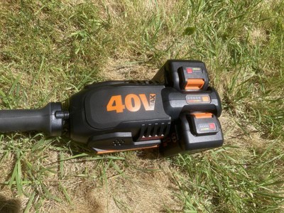 [This review was collected as part of a promotion.] The Worx Nitro 40V Power Share Cordless Attachment-Capable Driveshare 15" String Trimmer is a pretty solid cordless string trimmer. I was surprised to see that it has a carbon fiber shaft and uses 2 batteries. The box it comes in is not too big as it requires some assembly. The assembly instructions are in black and white line drawings and are not that easy to follow. I needed to refer to the assembled color picture on the box to see the handle orientation and location. It comes with a multi-tool to assemble, so you don't need any additional tools. It has a loop handle and also a padded grip on the shaft. I think the ergonomics are about the same as other string trimmers. I like that it is brushless, which gives it a longer runtime. It has the convenience of being cordless, which I really like, but is heavier as a result. Even without the 2 batteries, it's pretty hefty. I find that my old corded trimmer is lighter, but less convenient with needing an extension cord. What's nice about this is that it supports different attachments, which are sold separately. This lets me use the same basic tool and batteries, and only need to buy the end attachment to do things like edging and cutting hedges. For edging a lawn, some string trimmers end piece can be turned sideways, but this one requires holding the entire string trimmer at an angle, which makes it hard to hold, or buying an attachment. I also wish the trimmer was angled a little differently because at my height, it becomes too tilted when trimming low grasses. The trigger is pretty big and wide, which I appreciate because it doesn't hurt my fingers when using it. It has a variable speed, meaning it goes faster the more you pull the trigger. A downside is that it makes it hard to hold the trimmer and activate the trimmer at a low speed, because you kind of need to float your fingers in the air instead of gripping the trimmer handle completely. There is also an Eco mode button which seems to make it slower, but last longer. I feel like the Eco mode is good enough for most of my string trimming needs, so I like that it has this mode. Overall, it's a decent string trimmer if you're looking for one that is cordless, brushless, and attachment-capable.