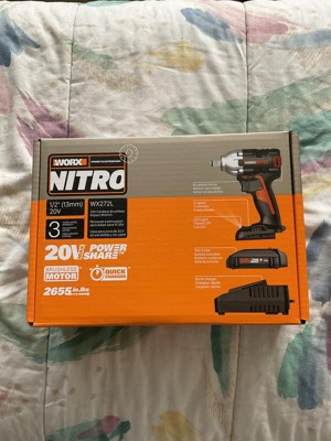 Worx Nitro WX272L 20V Power Share 1/2" Cordless Impact Wrench with Brushless Motor Battery and Charger Included