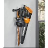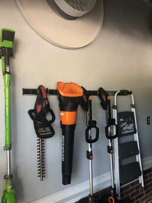 The WORX wall mount tool holder is a great garage storage solution that fits most of the WORX products. Store the items vertically or horizontally depending on the tool or if utilizing it on a stud or wall.