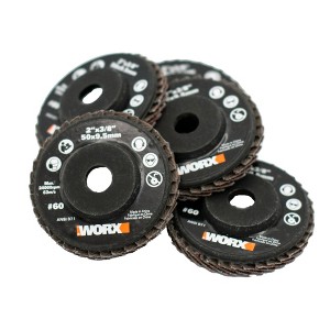 The Worx WA7253 2" MakerX 60g course sanding wheels are best for projects such as removing paint from metal and wood. They are also compatible with 2 in. grinders from other brands with a 3/8 in. arbor hole.