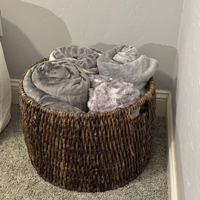 Woven Banana Bark Floor Basket - Brightroom™: Blanket Storage, Wicker Decorative Basket, Round, 18.11" Brown