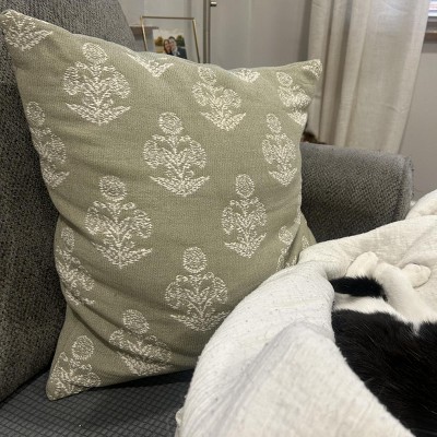 Woven Block Print Square Throw Pillow Light Sage/Cream - Threshold™ designed with Studio McGee: Cotton Jacquard, Indoor Use, Zippered