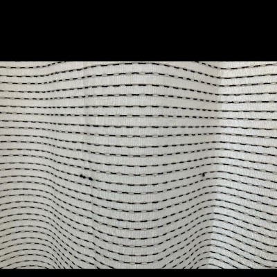 A: The shower curtain has a black horizontal dotted line pattern on a white background for a stylish look.