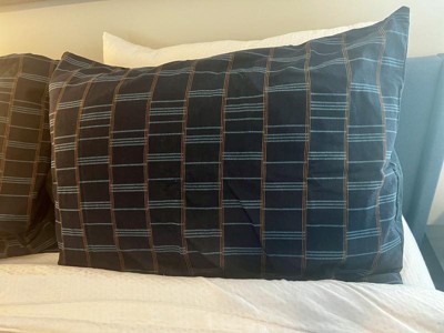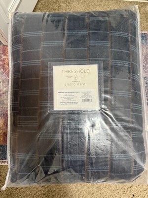 Give your sleeping nook a classic twist with this Woven Grid Comforter Set from Threshold™ designed with Studio McGee. Made from heavyweight cotton with polyester filling, this jacquard bedding set includes a comforter and pillow shams adorned with a woven grid pattern in navy blue, accented with aqua blue and brown highlights for an elevated look. The comforter is filled with soft padding, and a convenient zipper closure on the shams allows for secure pillow placement and easy removal.