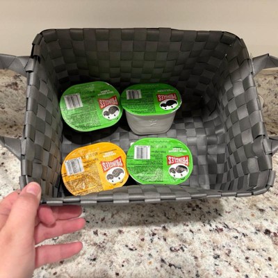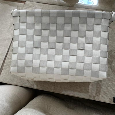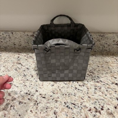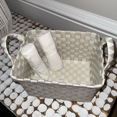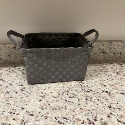 Bring function and style to your space with this Small Woven Plastic Basket from Brightroom™. This small plastic basket is designed in a rectangular silhouette and is ideal for stashing small household essentials, remote controls, stationery and more. The open-top design provides easy access to the contents, and the side tote handles make carrying it a breeze. Featuring an interwoven design in a gray hue, it'll add a touch of modern style to your space.
