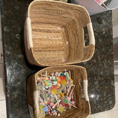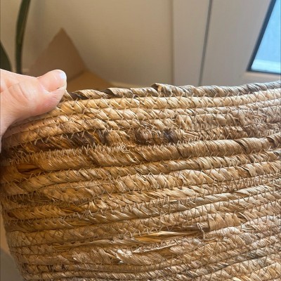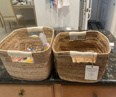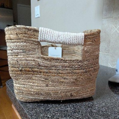 Freshen up your storage solutions with this Woven Rectangular Banana Sewing Basket from Brightroom™. Beautifully woven with banana bark, this spacious rectangular basket offers ample room to stow away anything from your kids' toys to throw blankets or magazines, helping keep your floors and tables clean and clutter-free. Plus, it's easy to lift and move from one place to another with the two cutout side handles.