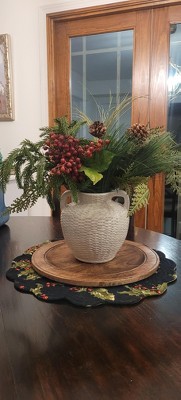 As soon as I saw this vase in store I fell in love with it! It seems very high end. I love the texture, and the color works well with any decor. The smaller opening at the top helps keep the stems together. I put a holiday arrangement in it for now, but I am excited to see what arrangements I can make for spring and summer! If you are on the fence, buy it! You won't be disappointed!
