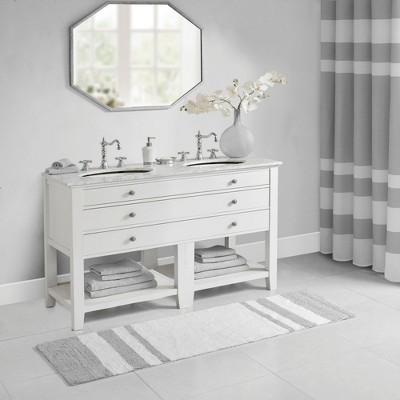 Product Name: Woven Texture Stripe Bath Rug Grey 22x58"