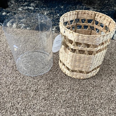Q: The photos hint at clear liner bin inside woven bin, but it's difficult to tell, and description does not say. Can someone please confirm? Otherwise looks like small trash would fall out sides.