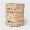 A: Its woven design with raffia-like accents adds a natural and artistic flair.