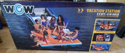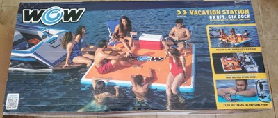 Amp up your water experience with the WOW Vacation Station, an 8' x 8' inflatable floating dock made with cutting-edge drop stitch technology. The drop stitch feature effectively distributes the air to create a much more sturdy surface that you can depend on when hanging out on this inflatable. With several reinforced D-rings, you can connect this floating dock to other Vacation Stations, attach it to a boat, or anchor it. Easy closure connection straps also make it easy to connect with other docks to make an even larger space. You'll love the included hand pump with a pressure gauge and carrier, plus the handles on all for sides for easy set up and transportation. Vacation Station provides ample space and stability for lounging, playing, and chilling out on the lake—or setting up alongside your boat for a perfect day on the water.