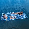 The WOW Inflatable Floating Walkway in Blue Chevron provides the ultimate summer water fun. The versatile design means you can use this large water float for many purposes, whether it's creating a walkway between two boats or lounging out on the lake. The connecting zipper system means you can connect multiple floats together to make a mega-pad for all your friends and family to soak up the sun together. Grommets on each end tie to a boat safely and securely. The heavy duty PVC construction, combined with vertical I-beams, means this floating mat pad provides full support for up to six adults who want to play, party, or simply relax and enjoy life.