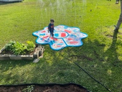 [This review was collected as part of a promotion.] My son is in heaven with the Lollies and Stars Spray Pad. With the warmer weather approaching, we have been hanging out in our backyard a lot more. I set this up, which was very easy to do and just turned on my hose. It is so much fun and he had a blast!!! When I'm done with it, I just leave it to dry for the next day of fun! I would highly recommend this product!