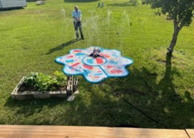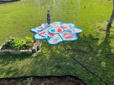 [This review was collected as part of a promotion.] Kids love this! It is perfect for hot days! It is easy to set up and take down. I have also been using it to lay out on and have the water on so I don’t overheat. It works perfect when you don’t want to waste to much water when your finished with it.