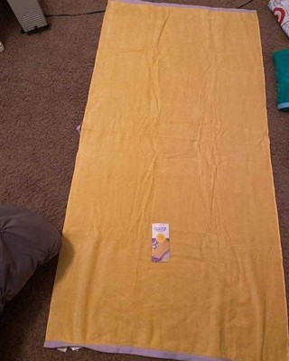 [This review was collected as part of a promotion.] I absolutely love this extra large beach towel. The bright yellow color is perfect for the summer. I love that it can be flipped over and the light purple goes so well with the yellow. There is even a small hook that you can use to carry the towel. The material is very soft and comfortable. The material is also thick and of high quality so it will last a long time. This is a great price for a large beach towel. I received an incentive to write this review.