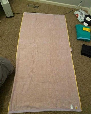 If you’re looking for thick nice 100% towels these are it! It’s reversible yellow on one side purple on the other which I like about it. Also comes with a hook to hang. It’s longer so great for beach and pool. Washes well. Good quality.