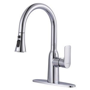 Product Name: WOWOW 3-Functions Single-Handle Pull Down Sprayer Kitchen Faucet with Deck Plate in Chrome