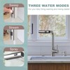 The innovative waterfall design enhances the aesthetics of the kitchen and enables efficient cleaning. You can freely choose three water discharge modes: stream, spray and sweep to meet different needs. Adopting SUS 304 stainless steel, anti-corrosion and anti-rust. The ceramic valve has been tested for durability with over 500,000 switching cycles.90° swivel handle for easy control of water temperature and flow rate, flexible and convenient.18 in. extension hose covers a 27 in. cleaning area for a hassle-free kitchen experience.