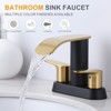 Product Name: WOWOW 4 in. Centerset Double-Handle Waterfall Bathroom Faucet in Gold and Black