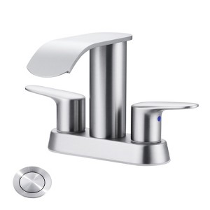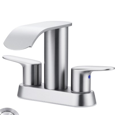 Product Name: WOWOW 4 in. Centerset Double-Handle Waterfall Bathroom Faucet in Brushed Nickel