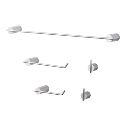 - Includes a long towel bar, 2 paper holders and towel hooks