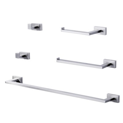 Includes: Toilet Tissue Holder, Robe Hook, Towel Bar(s)
