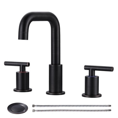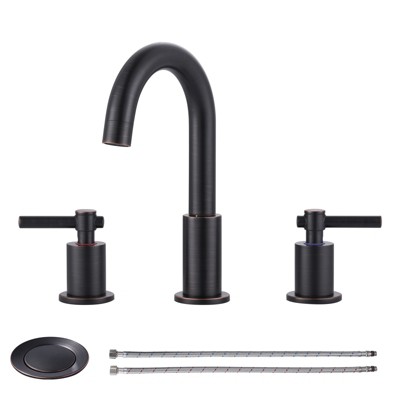 Product Name: WOWOW 8 in. Widespread Double Handle Bathroom Basin Faucet with Drain Kit in Oil Rubbed Bronze