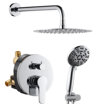- Shower faucet set complete, the shower valve with valve trim, rain showerhead and shower arm