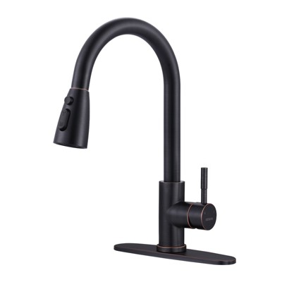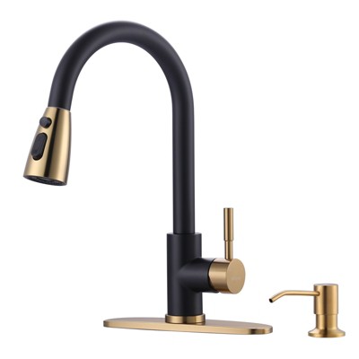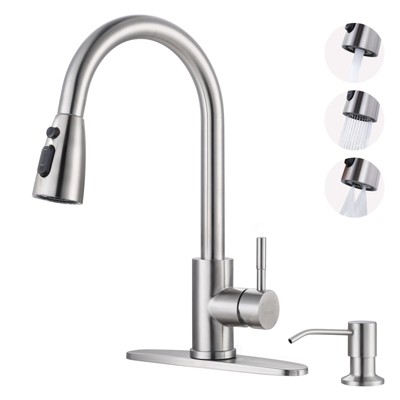 WOWOW Classic Single Handle Pull-Down Sprayer Kitchen Faucet with Soap Dispenser