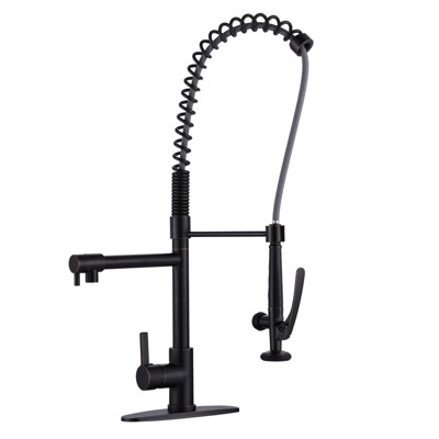 Classic single handle kitchen faucet, you can operate it with only 1 hand, to control the flow or temperature. Modern style fits for commercial restaurants, houses, hotels, apartments, and so on. Oversized commercial faucet up to 28.7 in. H. Please pay attention to the size when purchasing. All brass body, durable and heavy-duty, escort for quality and your health.360° Swivel Spout kitchen sink faucet, perfect for both single and dual sinks.