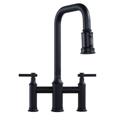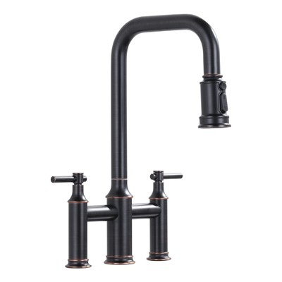 WOWOW Double Handle Bridge Kitchen Faucet with Pull-Down Sprayer