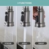 This bridge kitchen faucet features a simple cylindrical vintage style with smooth and flowing lines. Its surface has excellent anti-corrosion and anti-rust properties, ensuring it does not fade or lose its luster over time, making your kitchen look more attractive. It uses a 3-hole installation. The faucet is highly flexible, with a 360° swivel spout and a pull-down design that allows you to reach every corner of the kitchen sink, meeting various cleaning needs.
