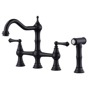 Product Name: WOWOW Double Handle Bridge Kitchen Faucet with Side Sprayer in Matte Black