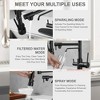 Dual-handle multifunctional faucet meets all your kitchen water needs. It features three unique outlets: a regular spray outlet, an aerated water outlet, and a drinking water outlet. The overall design is practical and complements its modern appearance. Made of brass and stainless steel, it ensures extreme durability and a sturdy structure. The dual-handle design allows one handle to control the main outlet's hot and cold water, while the other handle controls the drinking water outlet. This kitchen faucet can meet almost all your needs.