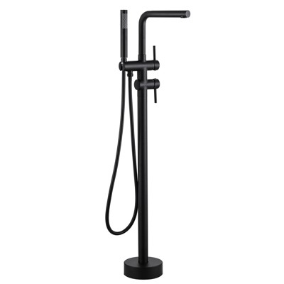WOWOW Freestanding Bathtub Faucet with Waterfall Spout and Handheld Shower in Matte Black