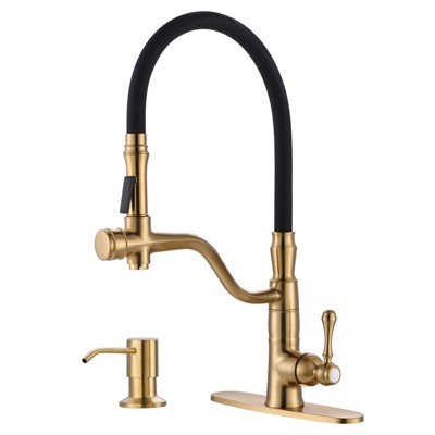 Product Name: WOWOW Single-Handle Pull Down Kitchen Faucet with Soap Dispenser in Gold