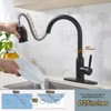 Simple and elegant design for any kitchen style. This pull-down kitchen faucet features a 360° swivel spout that provides a wider water area and greater flexibility. The spray head with three functions can switch between aerated stream, powerful spray, and sweep to meet all your kitchen needs. Purchase this product, and you will enjoy using it in your kitchen.