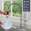 The High Arc commercial kitchen faucet seamlessly blends style and functionality. The finish not only provides a contemporary aesthetic, but also ensures durability and corrosion resistance. The high arc design accommodates large cookware, while the spring adds an industrial flair. This faucet has a flexible spring coil for easy maneuverability. With a pull-down sprayer, it adds convenience to tasks like washing dishes and cleaning sinks. Enhance the look and efficiency of your kitchen with this sleek and versatile commercial faucet.