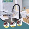 Featuring a simple and elegant design, this kitchen faucet complements any kitchen style. Standing at 15 inches in height, it fits under virtually any kitchen cabinet. The smooth, retractable nylon sprayer hose extends 27.5 inches, allowing you to reach all areas of the sink with ease, making it perfect for extensive advanced cleaning. Our kitchen sink faucet with a pull-down sprayer easily switches between three spray modes (stream, sweep, spray) with three buttons. The unique fan spray cleaning mode powerfully cleans stains.