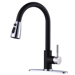 Product Name: WOWOW Single-Handle Pull-Down Sprayer Kitchen Faucet with Deckplate in Chrome and Black