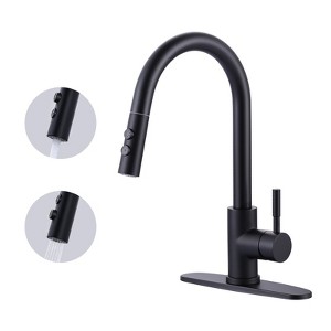Product Name: WOWOW Single Handle Pull Down Sprayer Kitchen Faucet with Deckplate in Matte Black