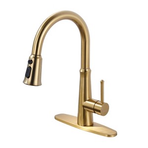 WOWOW Single Handle Pull Down Sprayer Kitchen Faucet with Soap Dispenser in Brushed Nickel - 1 of 4
