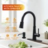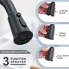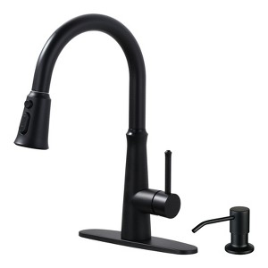 - Kitchen faucet comes with a soap dispenser and features 3-modes - spray, stream and powerful sweep spray