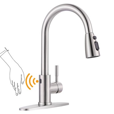 WOWOW Touchless Single Handle Pull Down Sprayer Kitchen Faucet with Deckplate