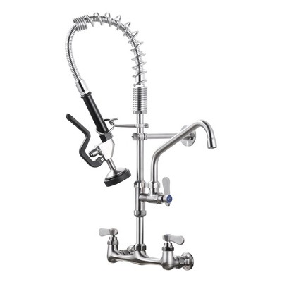 Product Name: WOWOW Wall Mount Triple Handle Pull Down Sprayer Kitchen Faucet with Pre-Rinse Sprayer in Brushed Nickel