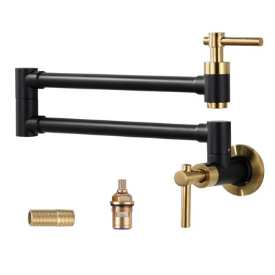 Product Name: WOWOW Wall Mounted Pot Filler with Double Handles in Black and Gold