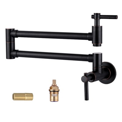 Adding a stove faucet to get water directly for the cookware, you'll never have to laboriously lift a pot full of water from the sink to the stove! This wall-mounted kitchen pot filler faucet made of solid brass material, it's heavy-duty and sturdy, rust-free and corrosion-resistant. Dual handles provide smooth turning for easy on/easy off and prevent drips. Designed to retract and swivel above your stove, this product makes cooking tasks efficient and creates a clean environment. This wall-mounted folding pot filler is the convenience you need for your kitchen. The folding faucet can be retracted effortlessly, making adding water to a pot easy. The wall-mounted design saves space, keeping your kitchen tidy.