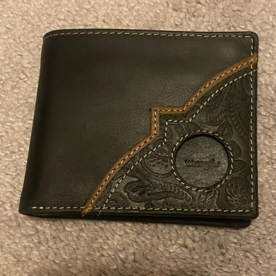 Wrangler Mens RFID Bifold Genuine Leather Wallet with Apple Airtag Holder Window