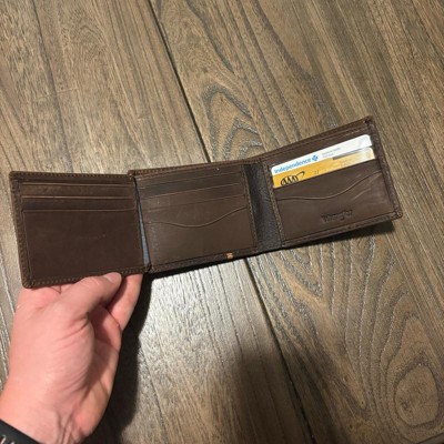 Comfortably carry your cards and money with this Bifold Wallet from Wrangler™. This trifold wallet features multiple card slots, ID pocket and a bill compartment, while the trifold design lends it a non-bulky feel, making it easier to slip in the front or rear pockets of your trousers. Best of all, it features RFID blocking that helps prevent your cards and IDs from digital theft. Showcasing a genuine leather finish, it's sure to bring classic style to your everyday accessories.