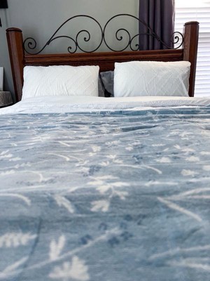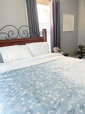 [This review was collected as part of a promotion.] I absolutely love this comforter! It is thick enough that I do not wake up feeling cold at night, but light enough for the summer! The little blue blanket that comes with it is ridiculously soft and sooo good for a chillier night. It fits my queen bed perfectly and it feels very sturdy. It does not have strong chemical smells ( which is a must for me) , and did not irritate my sensitive skin.